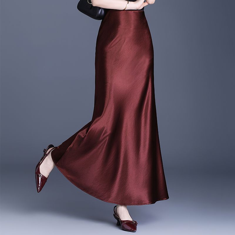 Acetate Satin Elegant High-Waist Draped Skirt 2025 Summer New Mid-Length Fishtail High-End Long Skirt Black