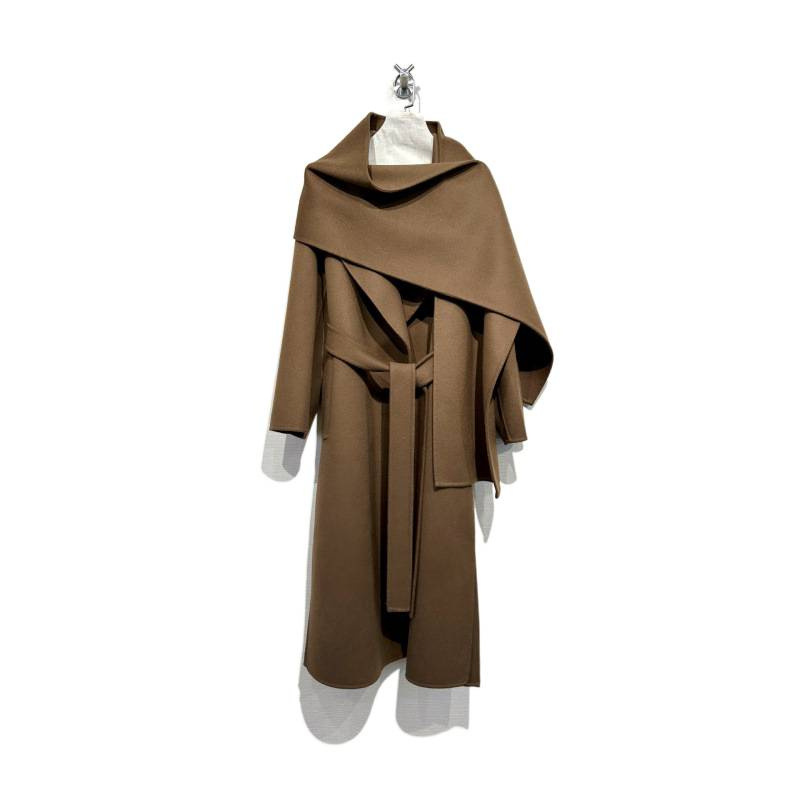 Featuring a scarf collar, lace-up details, and premium wool fabric, this coat offers both elegance and comfort.