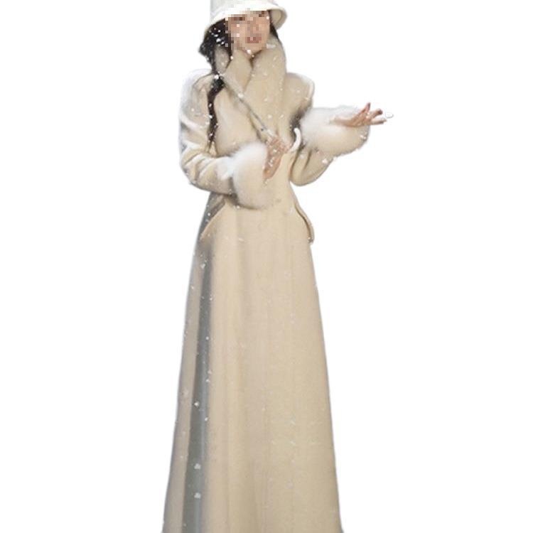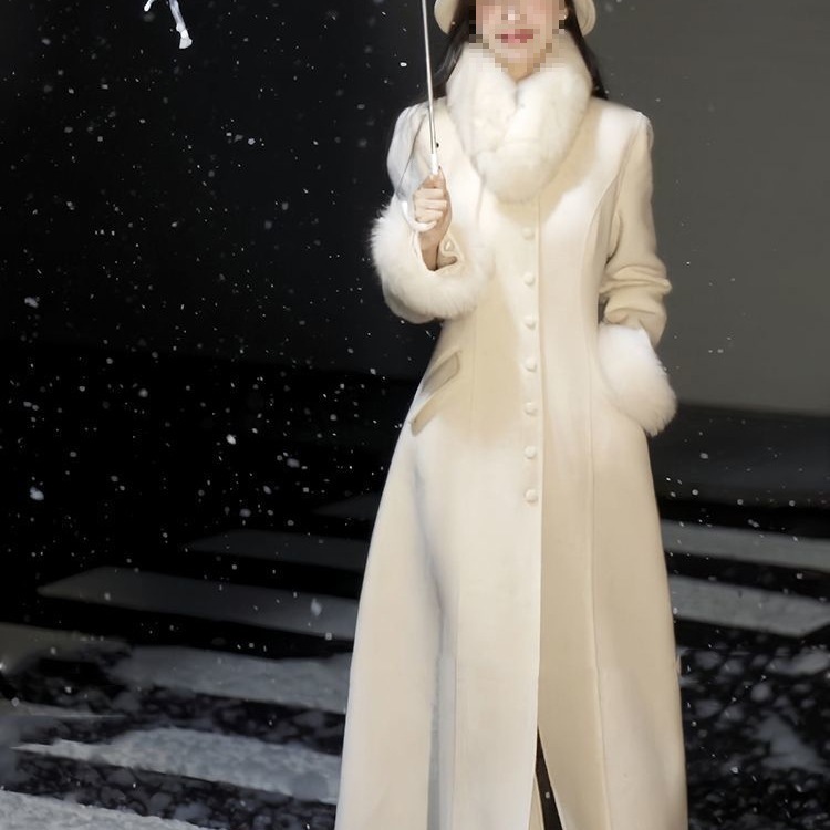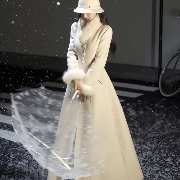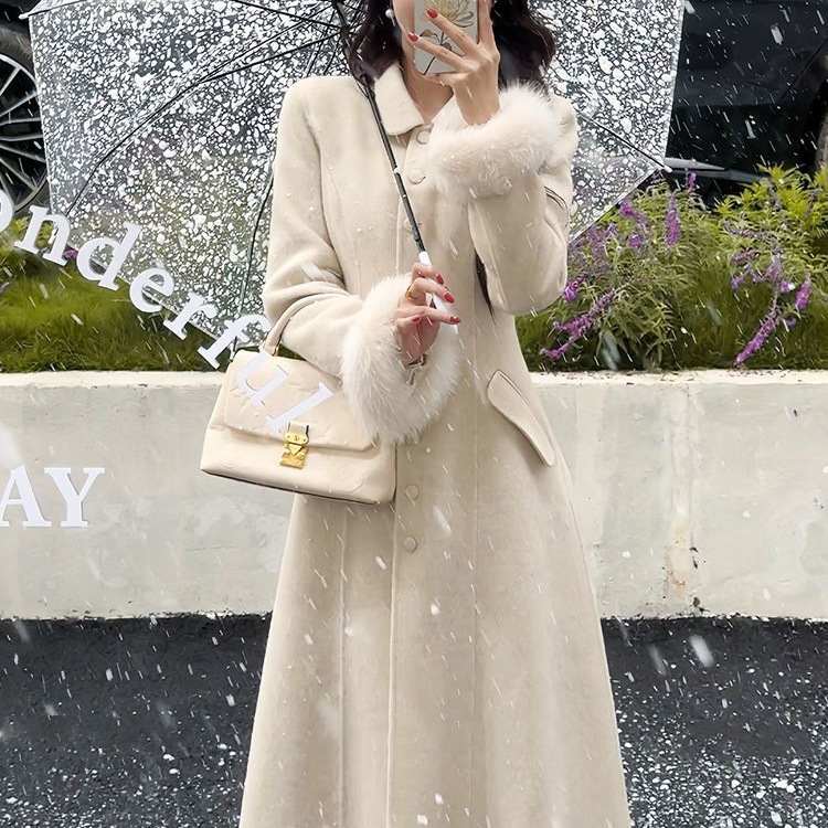 Fashionable Woolen Outwear With Fur Collar And Mid-Length Coat For Wealthy Daughters