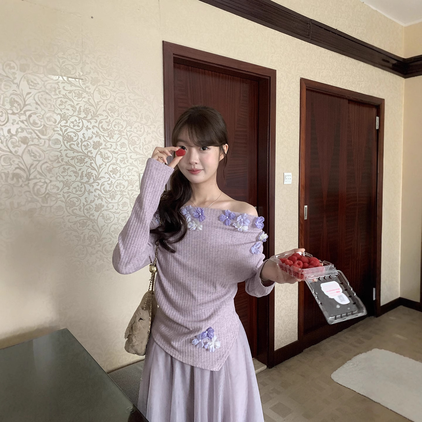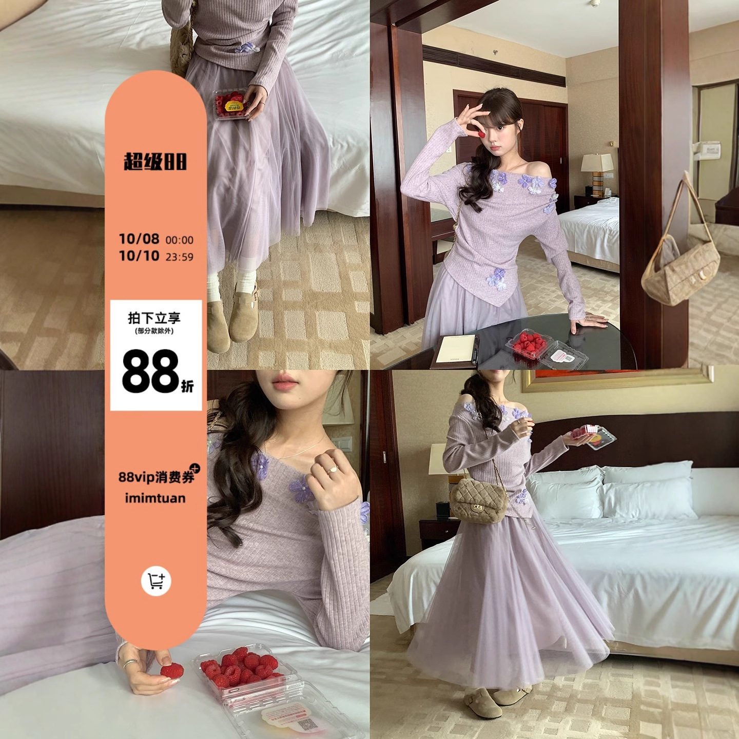 | Color | Purple top, Apricot top, Purple dress, Apricot long skirt |