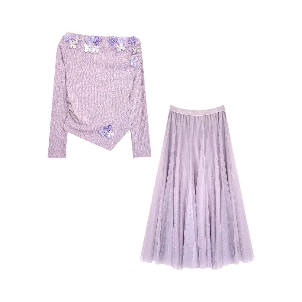 Off-Shoulder Top And Skirt Set For Women