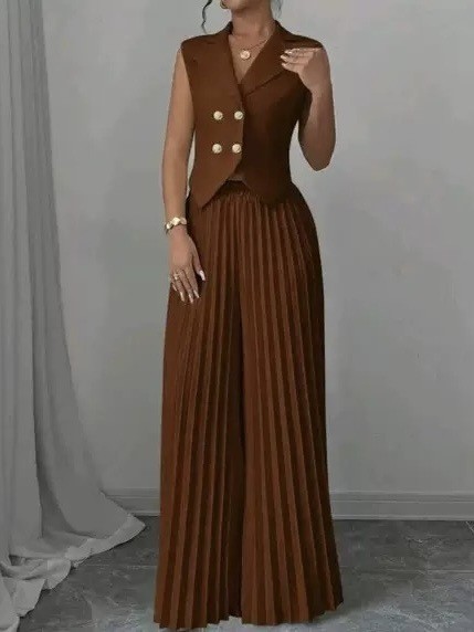 2025 European And American Cross-Border Autumn And Winter New Fashion Vest Pleated Skirt Suit Women’s Clothing Amazon Independent Station
