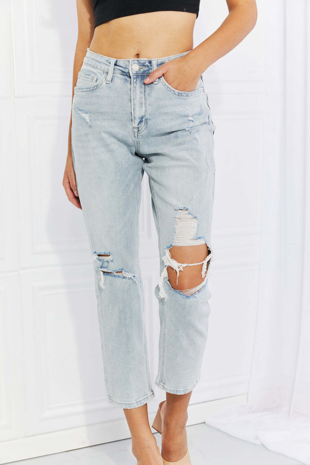 Vervet Distressed Cropped Jeans – Full Size Women’s Denim