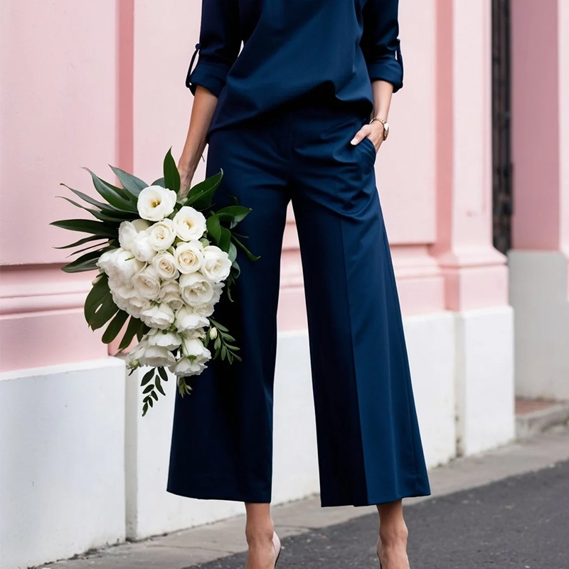Women’s High-Waisted Straight Cropped Pants Commuter Solid Colour Casual Pants